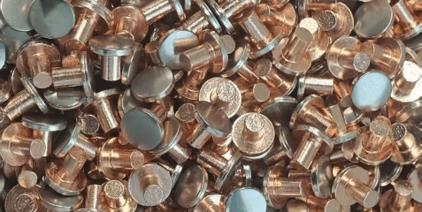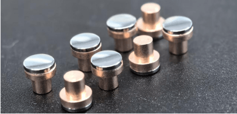 Here, tungsten rivets refer to composite rivets made by welding tungsten tips with iron or copper base rivets. They usually involve nickel plating, but it is also possible to choose not to electroplate or to electroplate other materials.